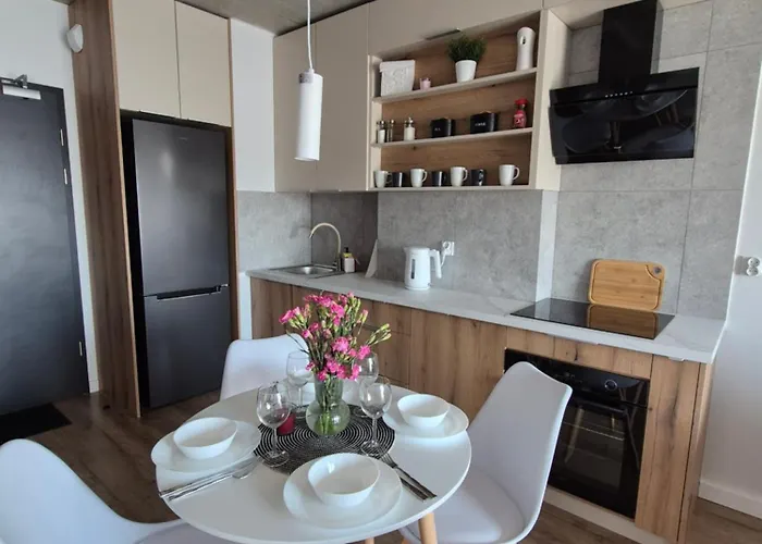 Vizzitus Premium Apartament Lodz Manufaktura距离罗兹瓦迪斯瓦夫雷蒙特10公里,步行5即可到Kasprzaka Legionow公交车站。 公寓的阳台配有休息区。